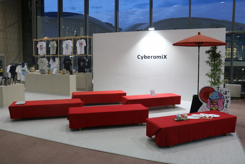 CyberomiXのブースは、オリジナルTシャツをアパレルショップのように陳列し、「今までにない演出」「非常に印象的」と参加者から大好評を博しました。
