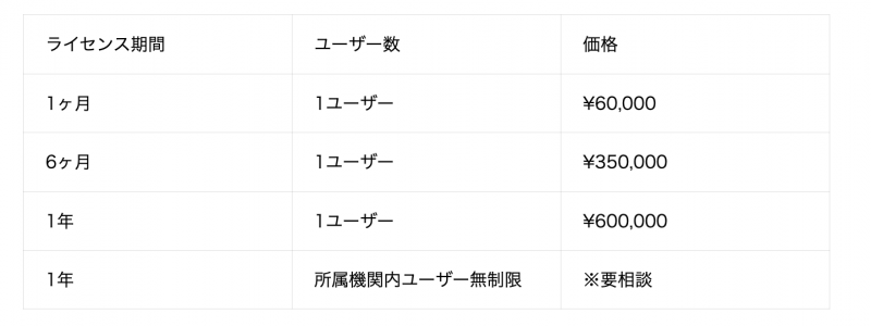 ※上記はアカデミア向けの価格です